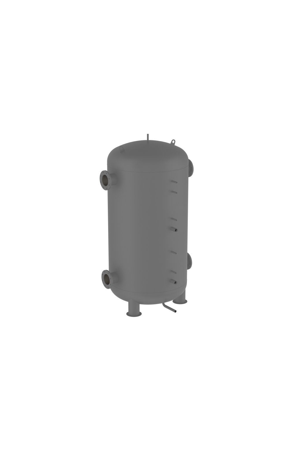 Ocelová akumulační nádrž s přírubovými hrdly 4 x DN 100 a difúzními (směrovacími) oblouky, navržená pro maximální účinnost, efektivitu provozu a dlouhou životnost. Nádrž je určená pro chladící a topné systémy s vysokými průtoky.