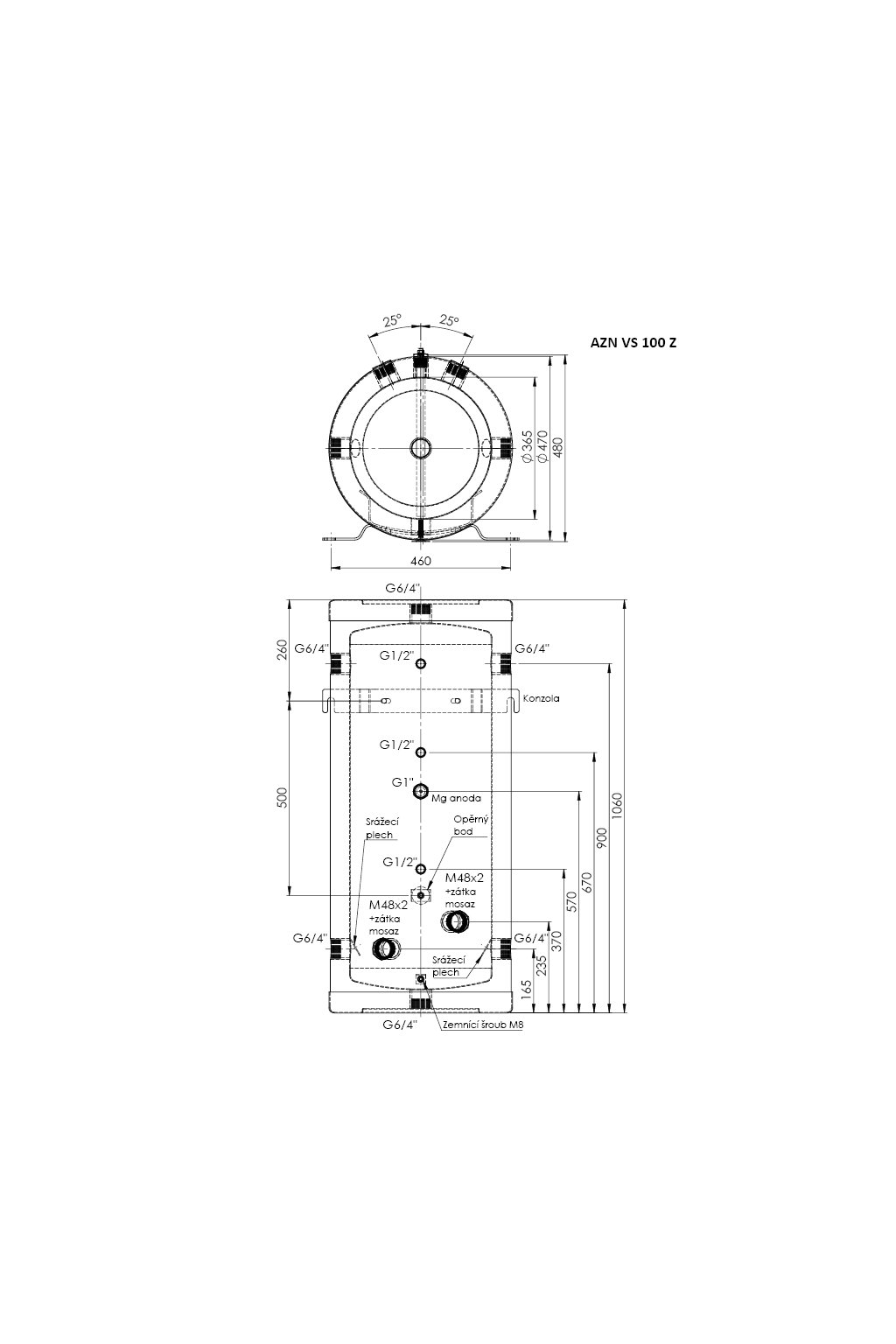 - Provedení nádrže závěsné svislé, součástí závěsná konzole a opěrný bod