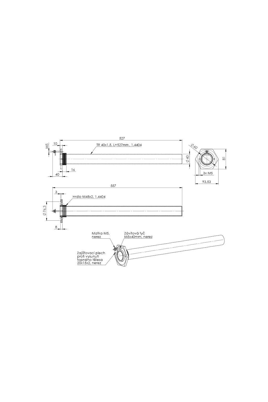 Jímka nerez M48x2 pro keramické topné těleso bez krytky, L=527mm