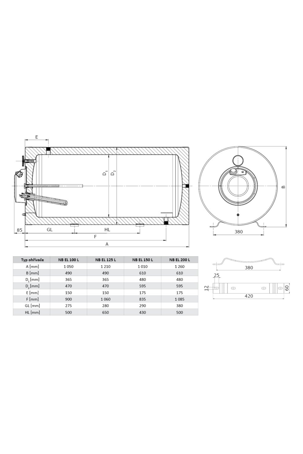 ROLF NB EL 200 L / 2,4 kW nerezový elektrický ohřívač vody závěsný, vodorovný